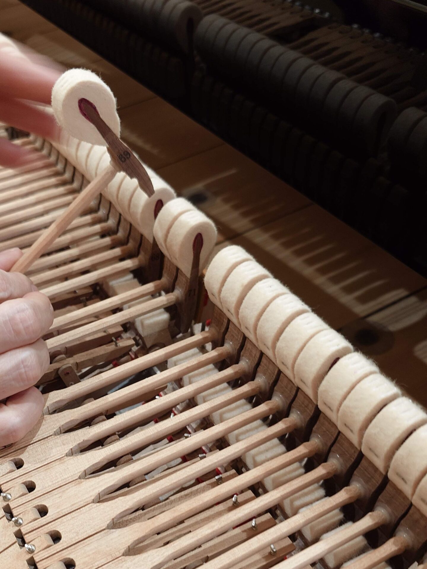 今後は一旦フェルトを削り調整してしばらくもたせ、数年後にハンマーを入れ替えるのが良いのではとのご提案を頂きました。