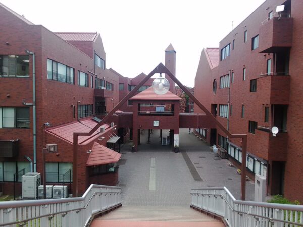 (左の黄色い建物がDrumStudio LA FIESTA、右奥がLive☆Space PIANISTA)