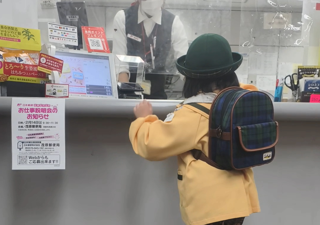 幼稚園からの帰りがてら、パパに頼まれたおつかいをこなすまのんちゃんです。